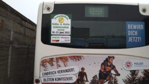 Wir haben „fahrende“ Werbung 🙂 Das Omnibus Unternehmen von Jens Berhardt fährt unser Plakat durch den Landkreis. DANKE!